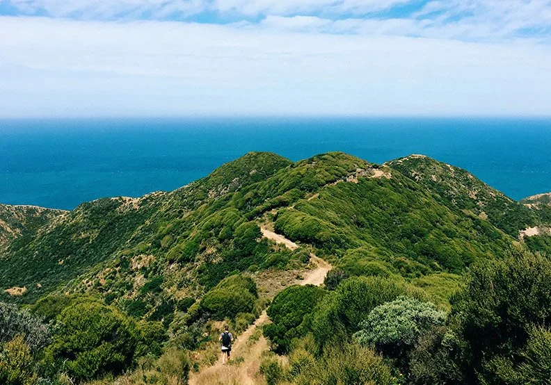 This is no fenced sanctuary or fragile zoo population. The Capital Kiwi Project has reintroduced the birds into an open, working landscape — more than 24,000 hectares of steep farmland, coastal scrub, and native bush stretching from Mākara to the south coast. These are the same ridgelines where wind whips over gorse, tūī dart through flax flowers, and the Tasman Sea shimmers blue on the horizon.